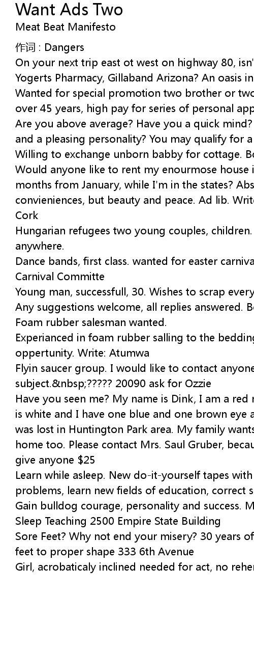 | 歌曲 | Want Ads Two |