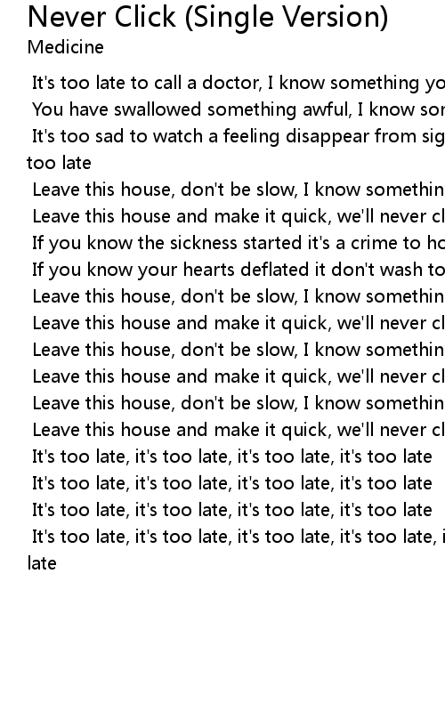 [04:09.999] It's too late, it's too late, it's too late, it's too late