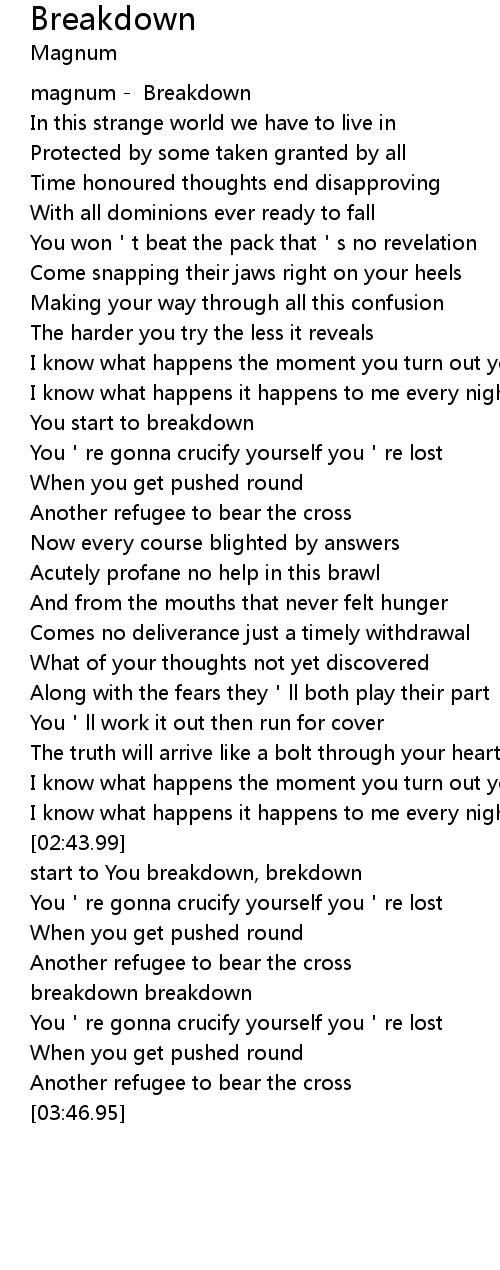 | [02:49.21] | You re gonna crucify yourself you re lost |