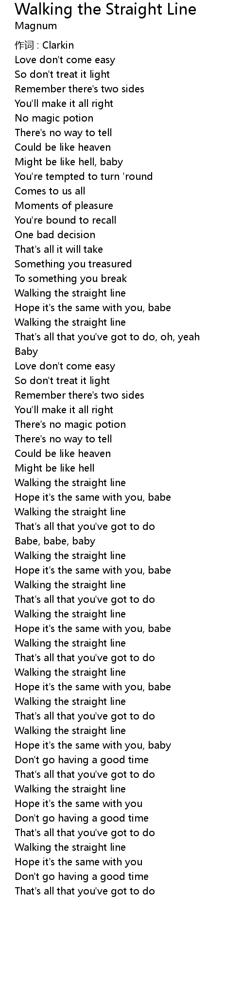 | 歌曲 | Walking the Straight Line |