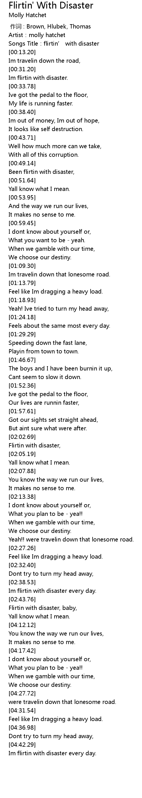 | [00:06.44] | Songs Title: flirtin' with disaster |