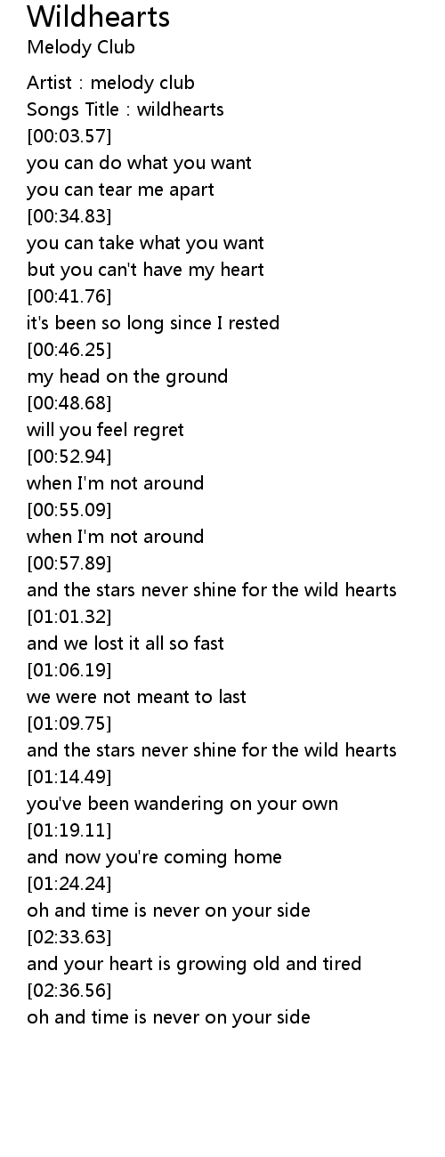 | [01:11.00] | and the stars never shine for the wild hearts |