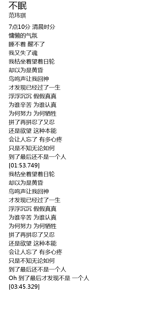 | [03:25.739] | 到了最后还不是一个人 |