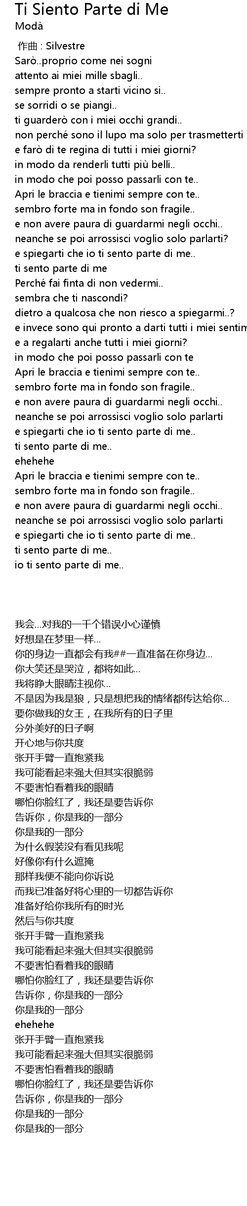 | 歌曲 | Ti Siento Parte di Me |