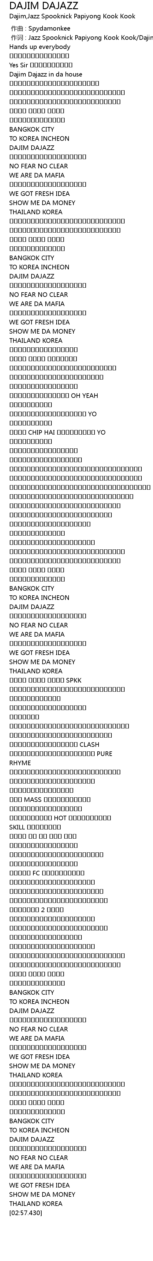 | [00:00.318] | 作词 : Jazz Spooknick Papiyong Kook Kook/Dajim |