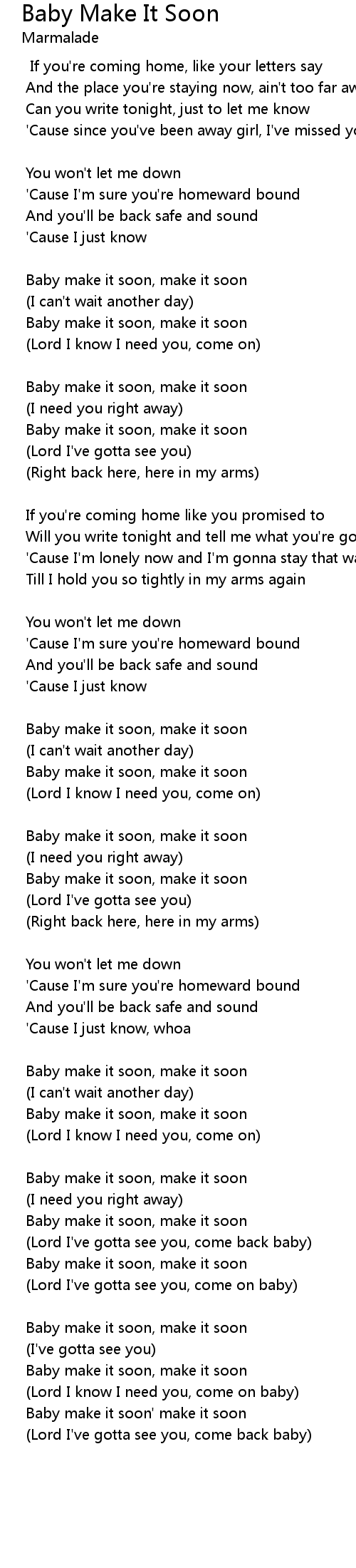 Baby make it soon, make it soon |