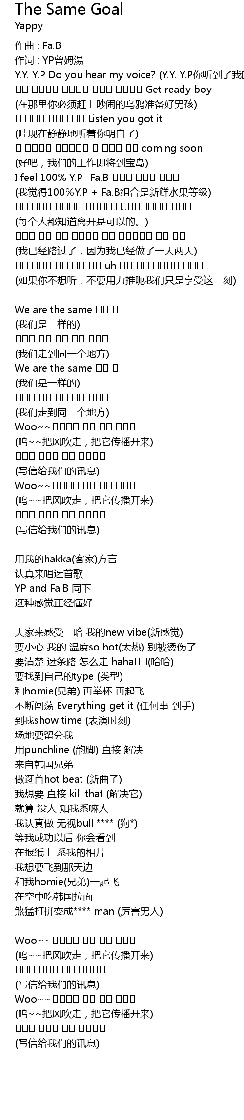 | 歌曲 | The Same Goal |