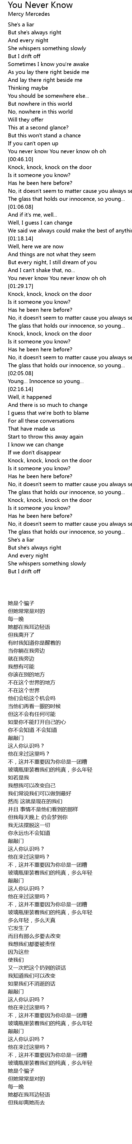 You never know You never know oh oh |