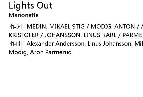 | [00:00.000] | 作曲 : Alexander Andersson, Linus Johansson, Mikael Medin, Anton Modig, Aron Parmerud |
