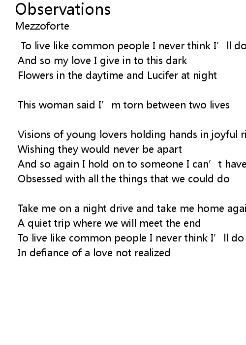 | To live like common people I never think I’ll do | |
