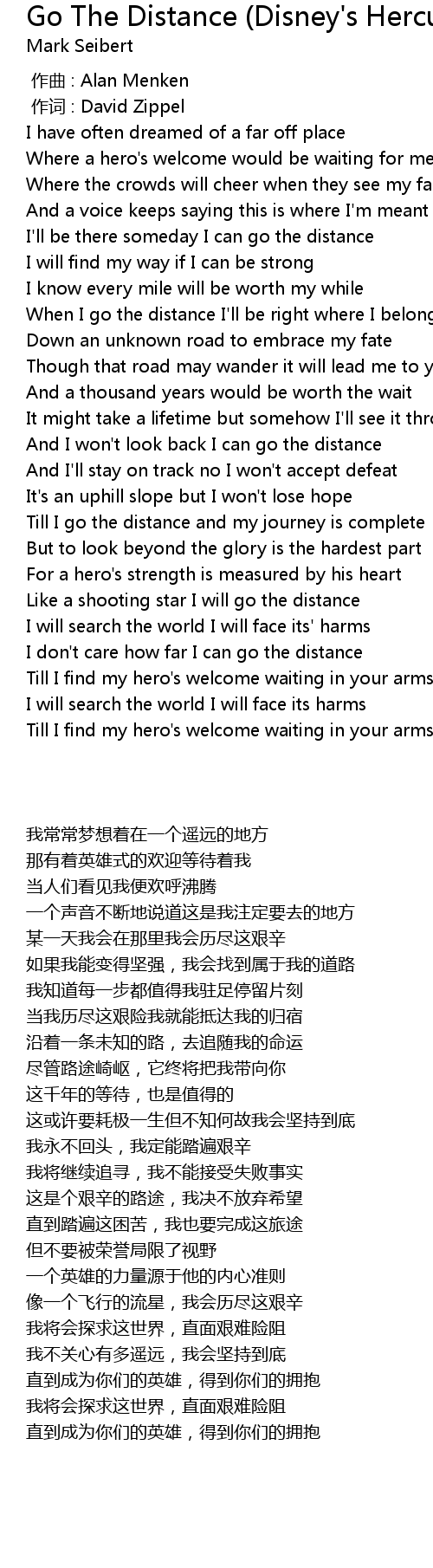 | 歌曲 | Go The Distance (Disney's Hercules) |