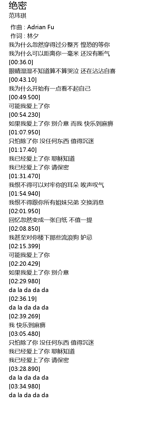 | [03:22.489] | 我已经爱上了你 请保密 |