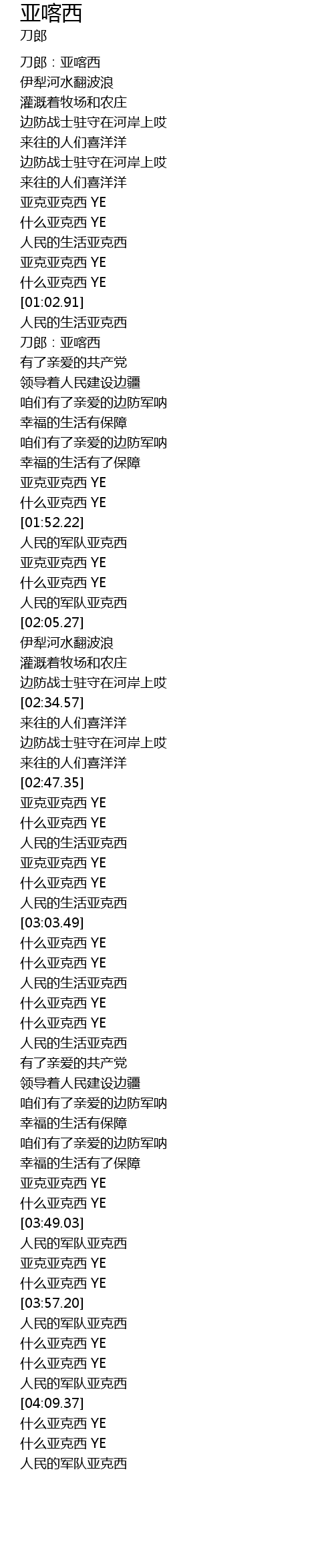 | [04:01.92] | 什么亚克西 YE |