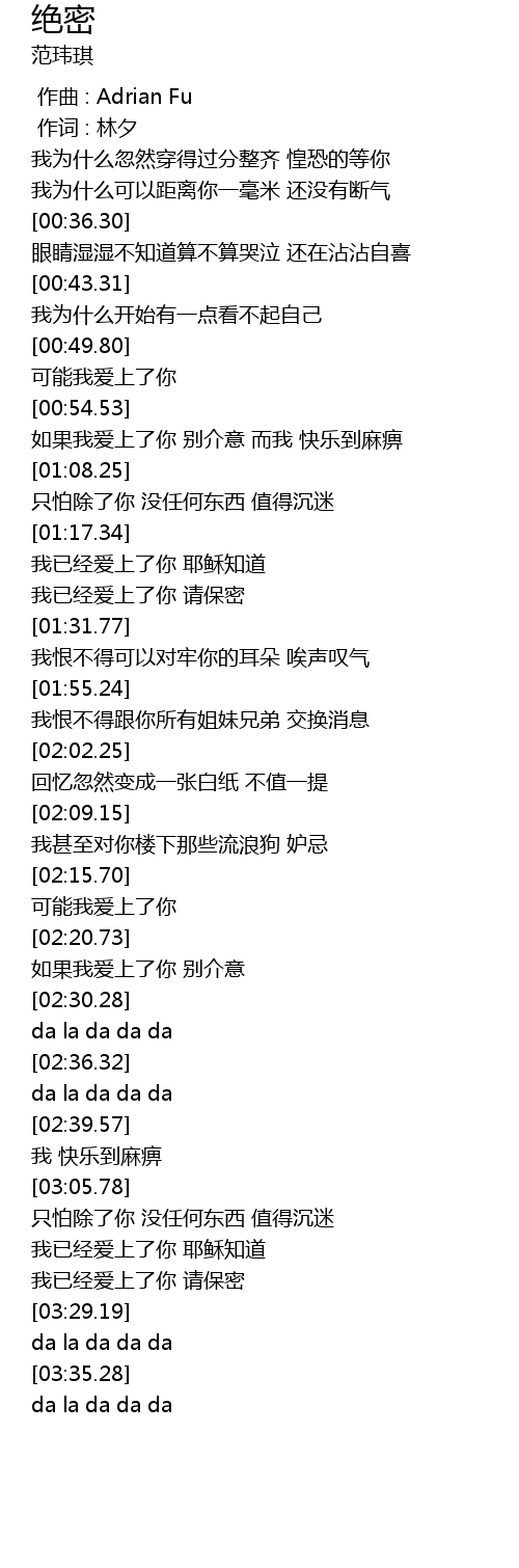 | [03:22.79] | 我已经爱上了你 请保密 |