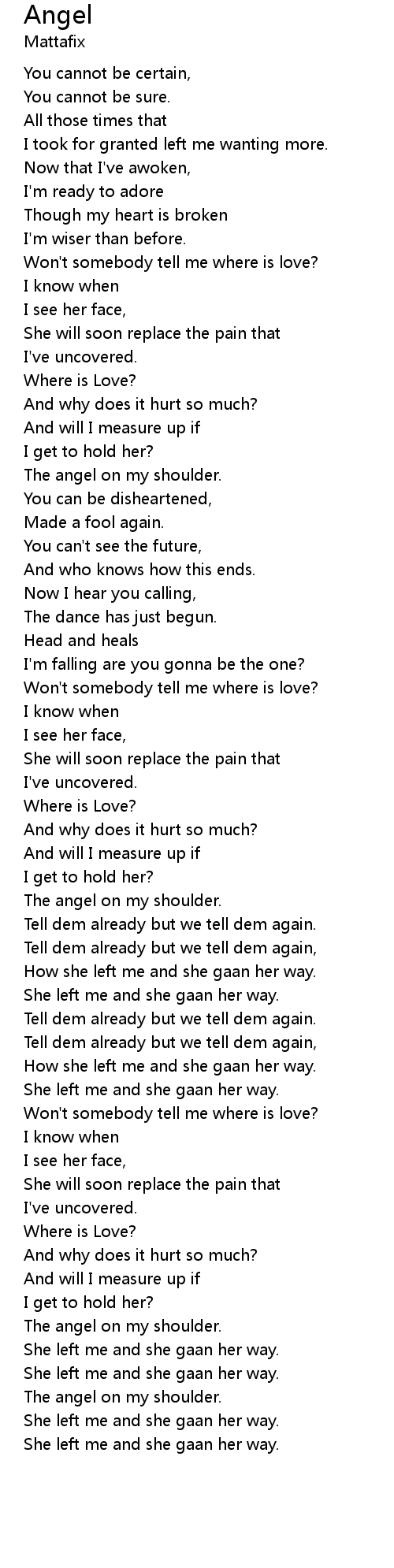 Won't somebody tell me where is love? |