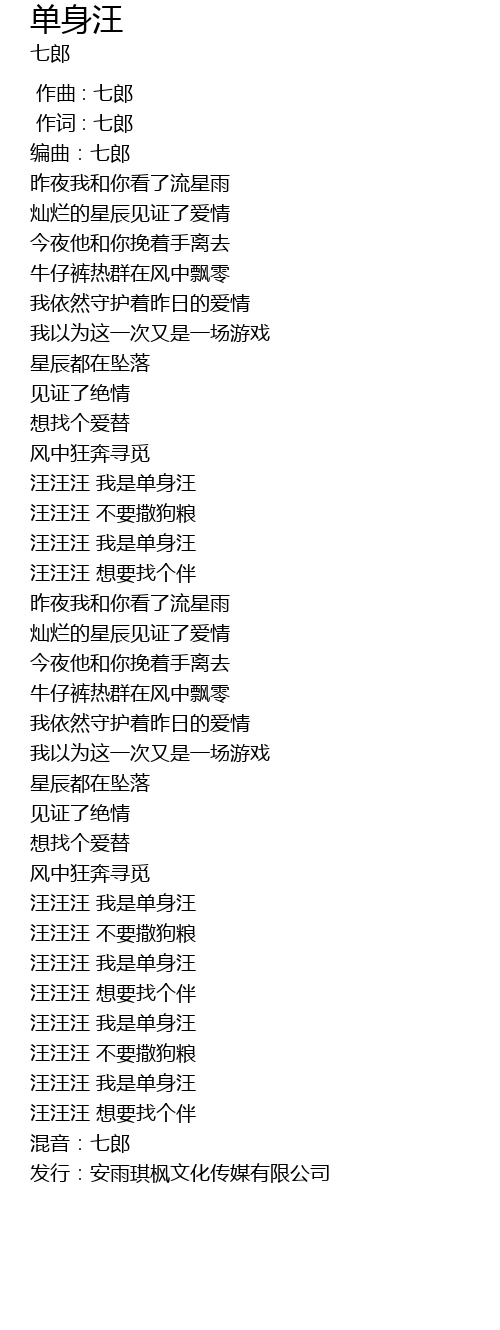 | [02:24.00] | 汪汪汪 我是单身汪 |