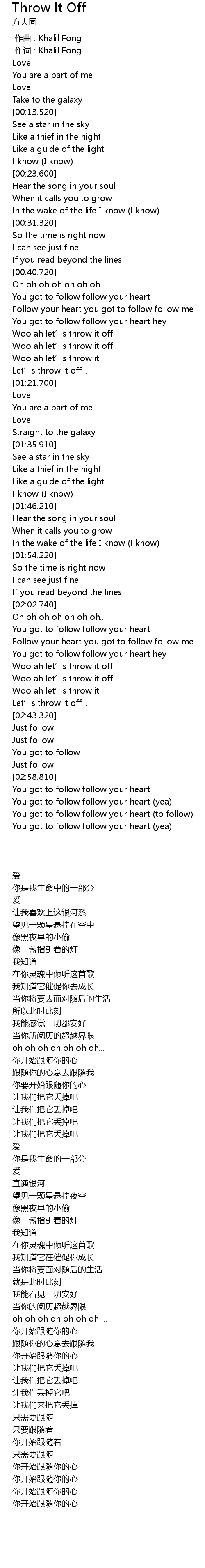 | [00:00.000] | 作词 : Khalil Fong |