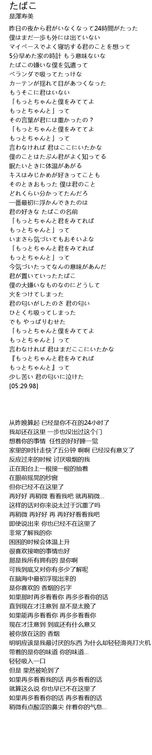 | [01:39.46] | 反应过来的时候 讨厌吸烟的我 |