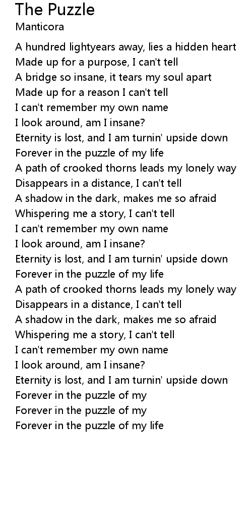 Forever in the puzzle of my |