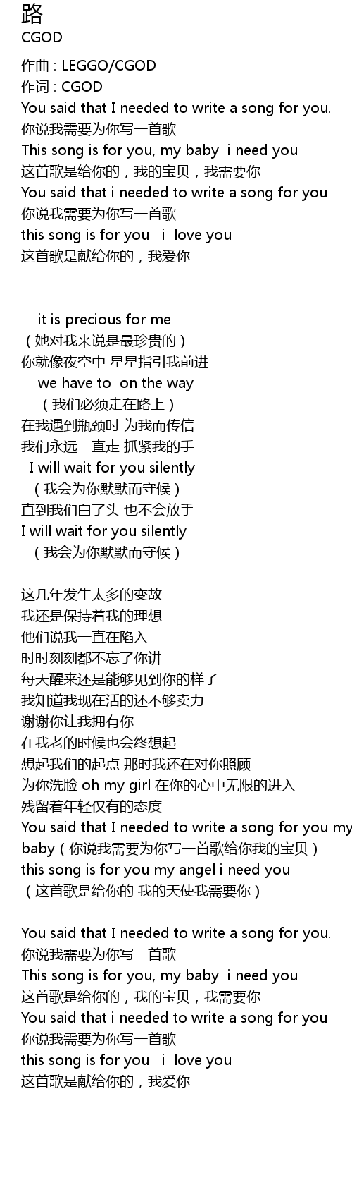 | You said that I needed to write a song for you my baby(你说我需要为你写一首歌给你我的宝贝) | |