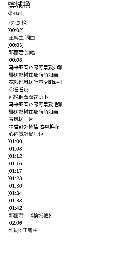 | [00:00.00] | 作词 : 王粤生 |
