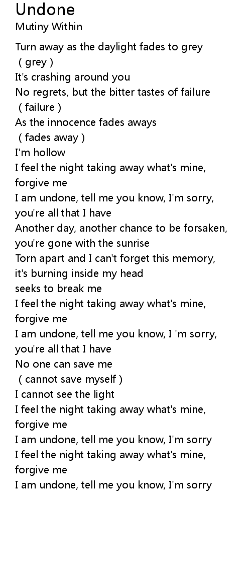 | [00:47.21] | I am undone, tell me you know, I'm sorry, |