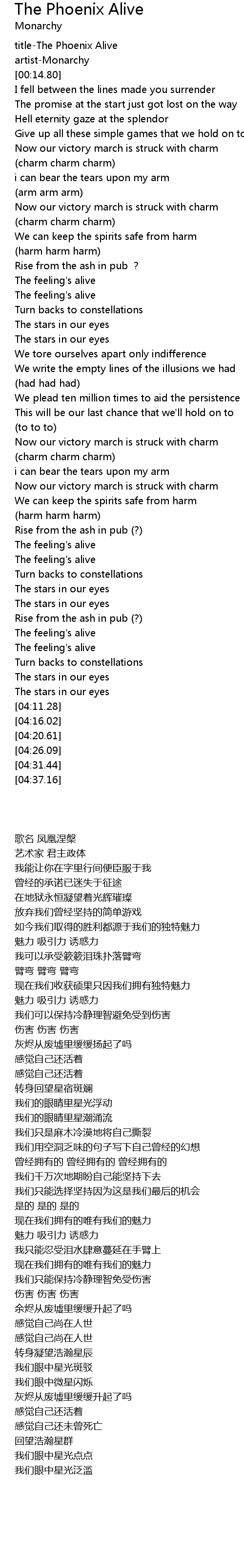 | [00:01.00] | titleThe Phoenix Alive |
