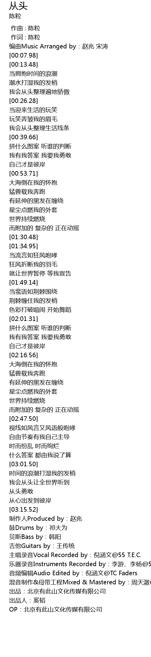 | [03:16.49] | 制作人Produced by:赵兆 |