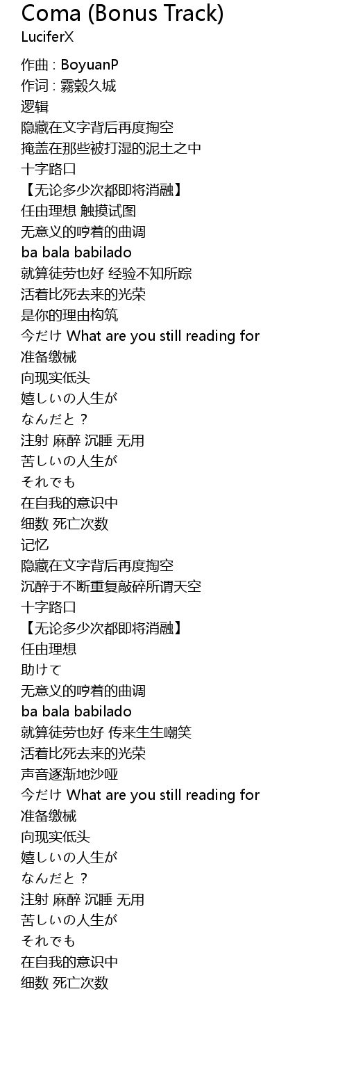 | 歌曲 | Coma (Bonus Track) |