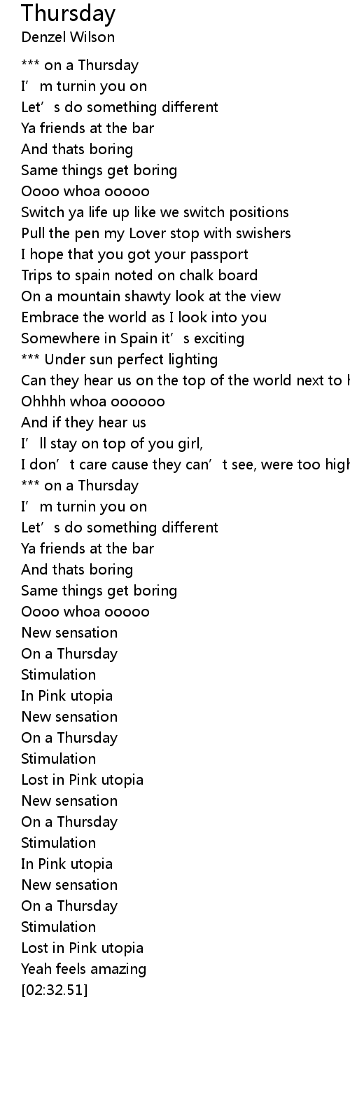 | [00:21.13] | on a Thursday |
