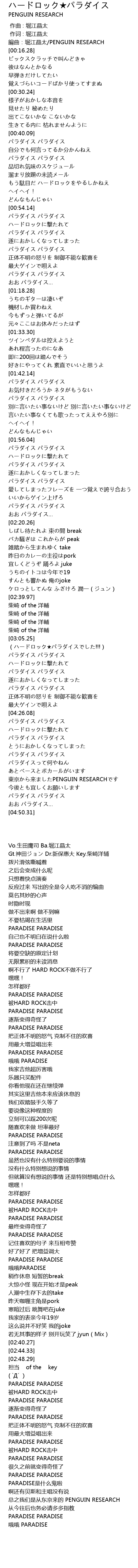 | [04:36.19] | PARADISE是什么鬼啦 |