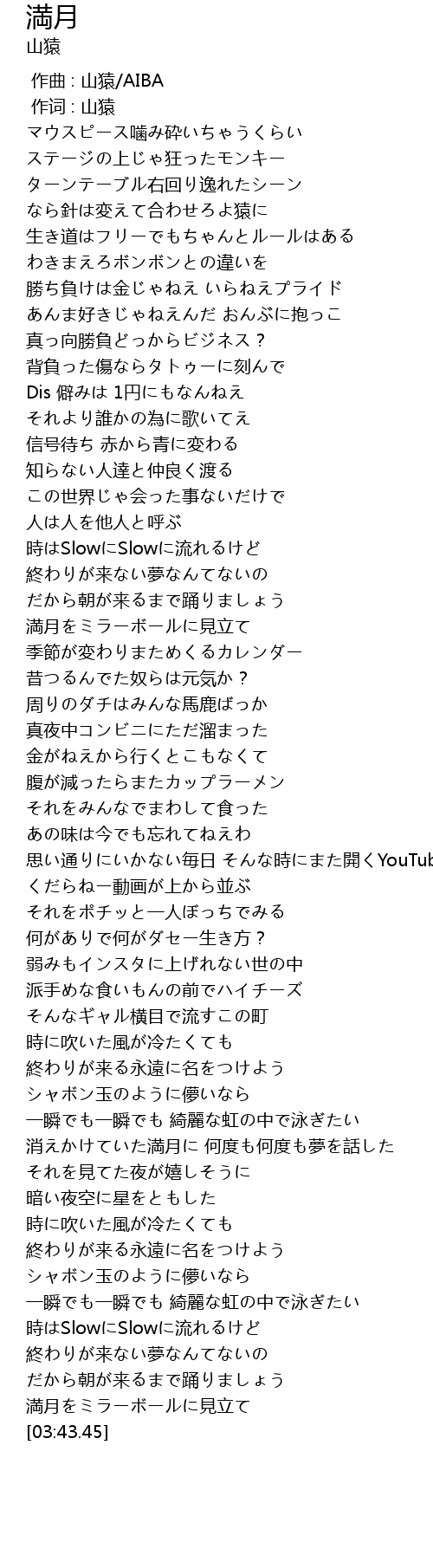 | [02:39.62] | 消えかけていた満月に 何度も何度も夢を話した |