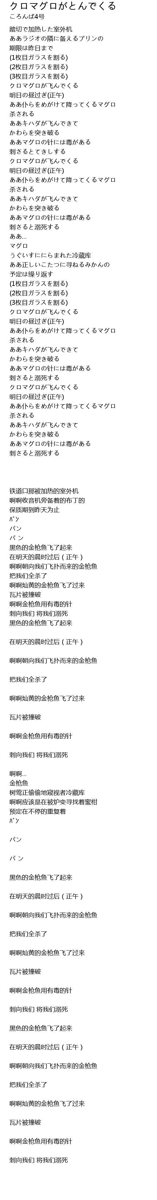 | 歌曲 | クロマグロがとんでくる |