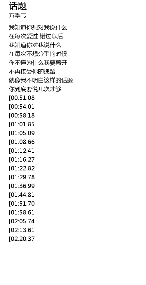 | [04:15.57][02:20.37] | 这样的话题 |