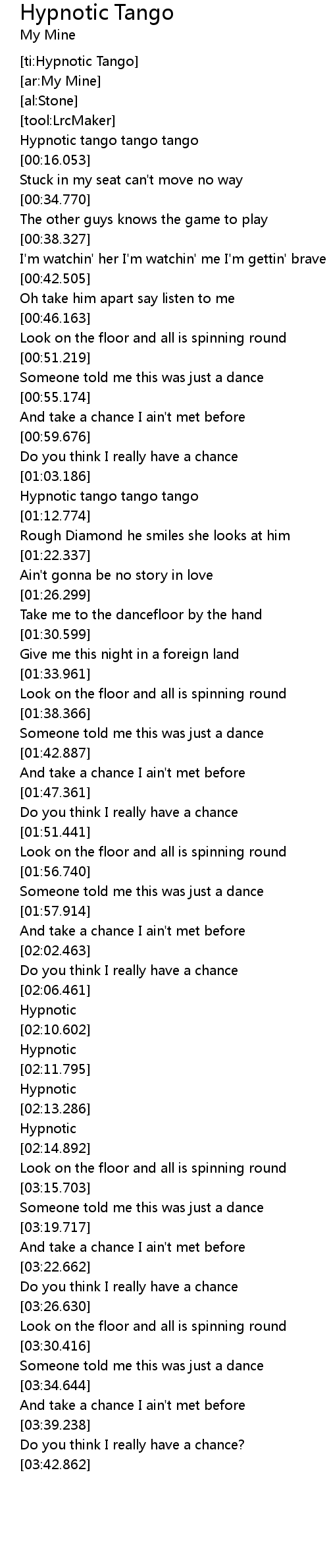 | [00:08.232] | Hypnotic tango tango tango |