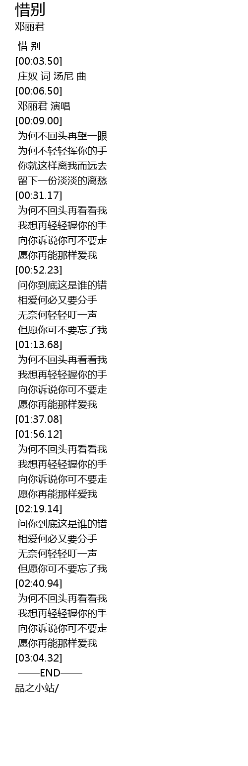 | [00:00.00] | 惜 别 |
