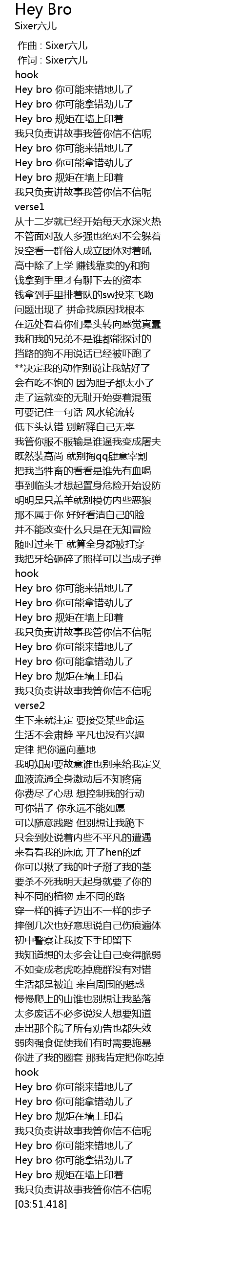 | [03:39.992] | Hey bro 你可能来错地儿了 |