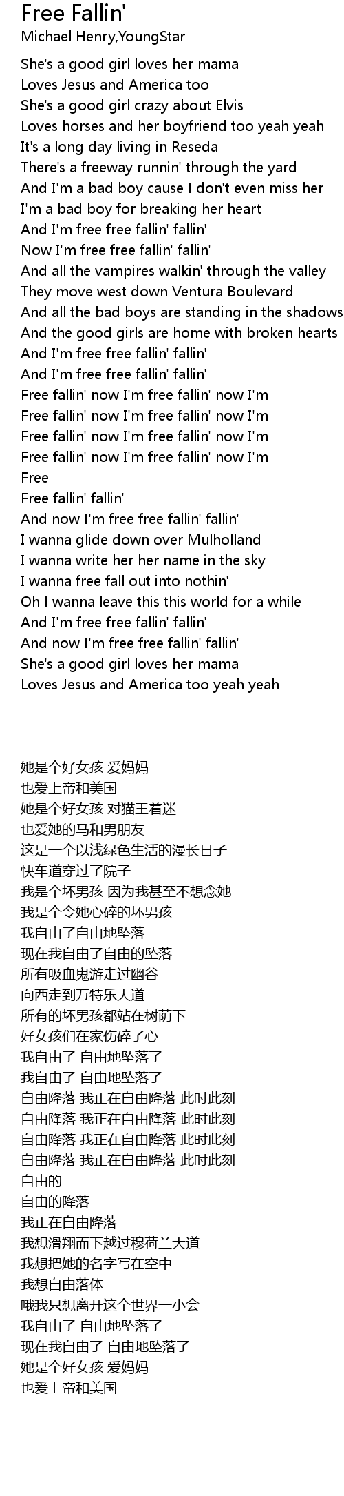 And now I'm free free fallin' fallin' |