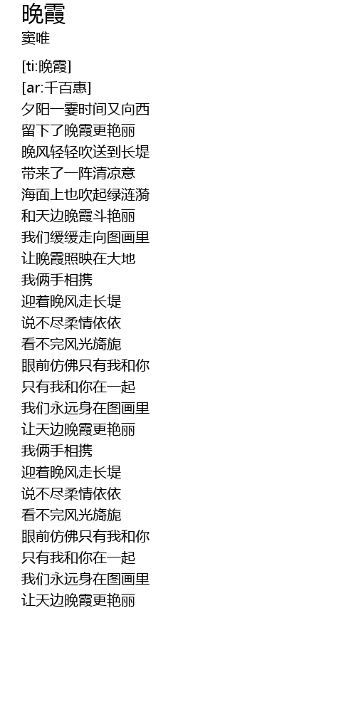 | [00:23.568] | liú xià le wǎn xiá gèng yàn lì |