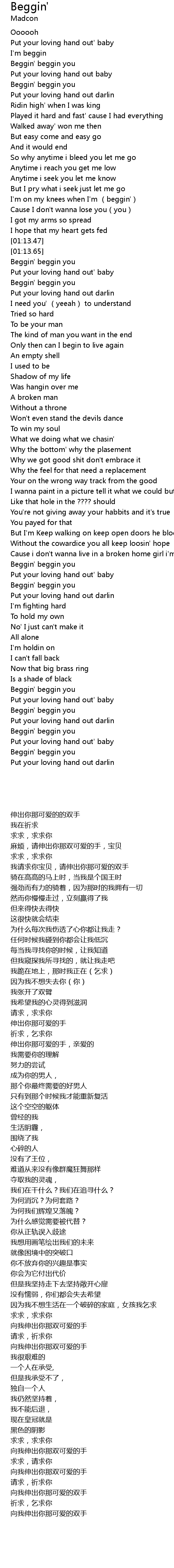 | [00:17.14] | I'm beggin |