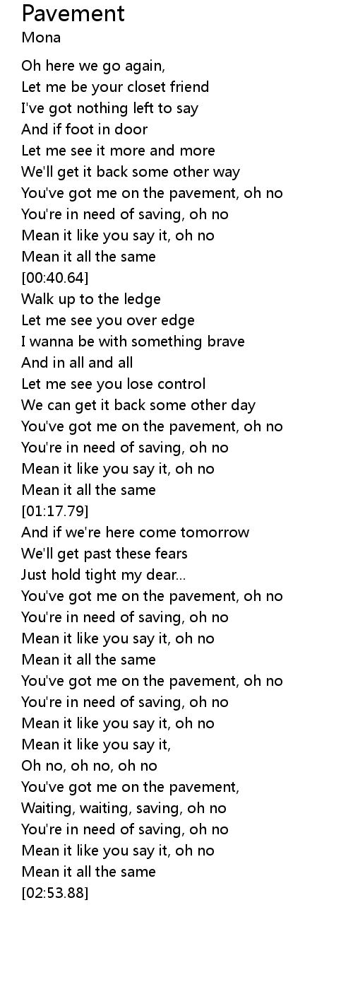 | [01:39.89] | You've got me on the pavement, oh no |