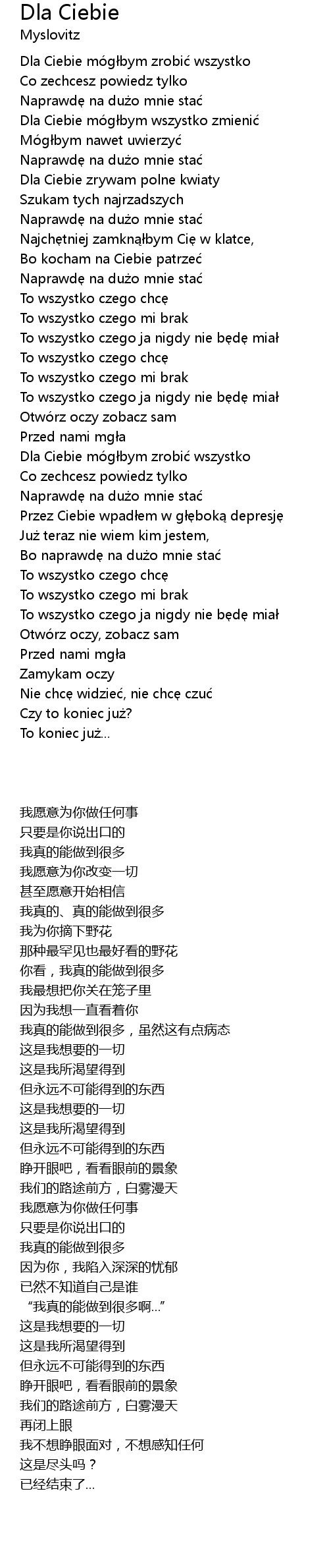 | 歌曲 | Dla Ciebie |
