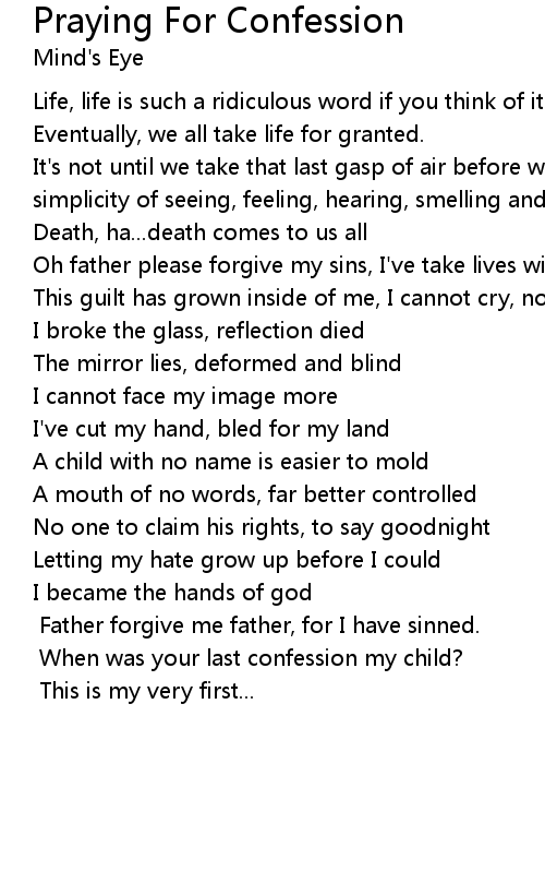 Oh father please forgive my sins, I've take lives with my bare hands |