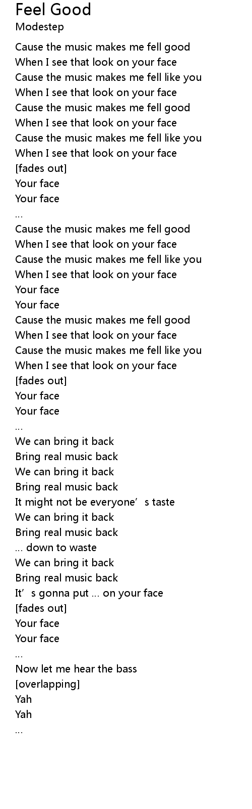 | Cause the music makes me fell good | |
