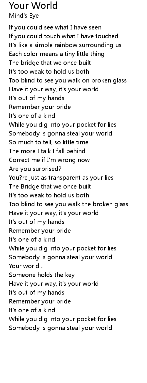 Somebody is gonna steal your world |