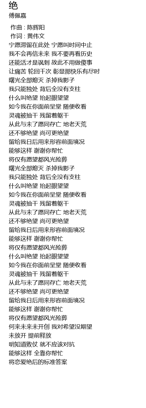 | [02:37.210] | 还不够绝望 尚可更绝望 |