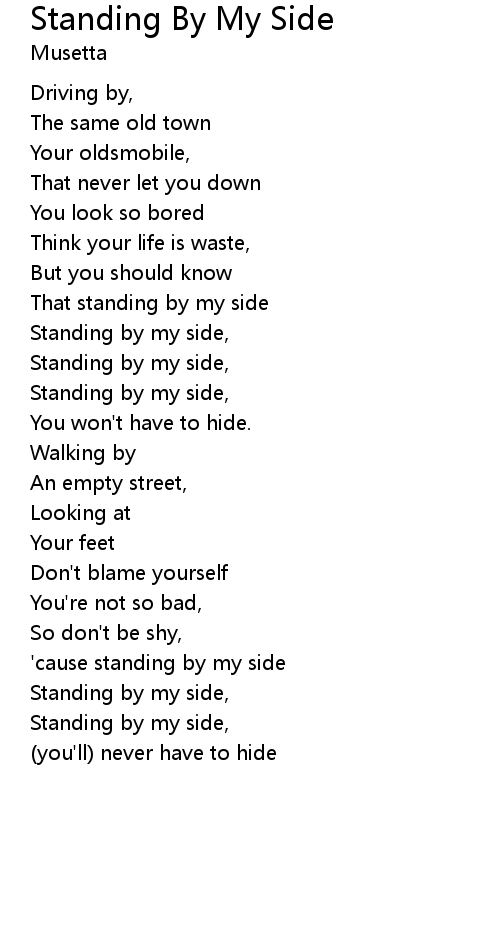 | That standing by my side | |