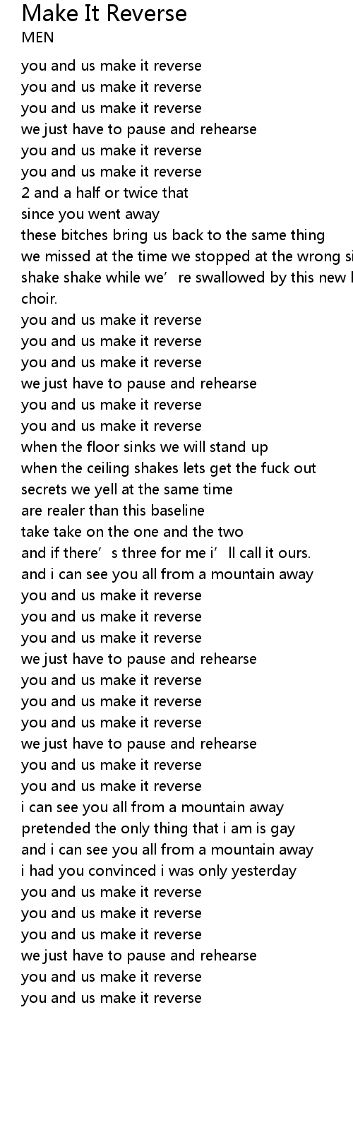 | 歌曲 | Make It Reverse |