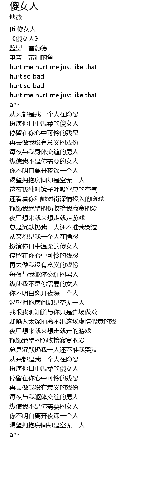 | [01:58.315] | 扮演你口中温柔的傻女人 |