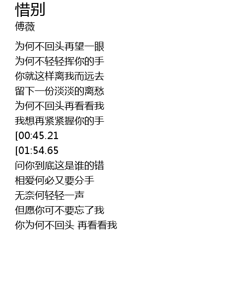 | [01:45.97][00:45.21] | 向你诉说你可不要走 |